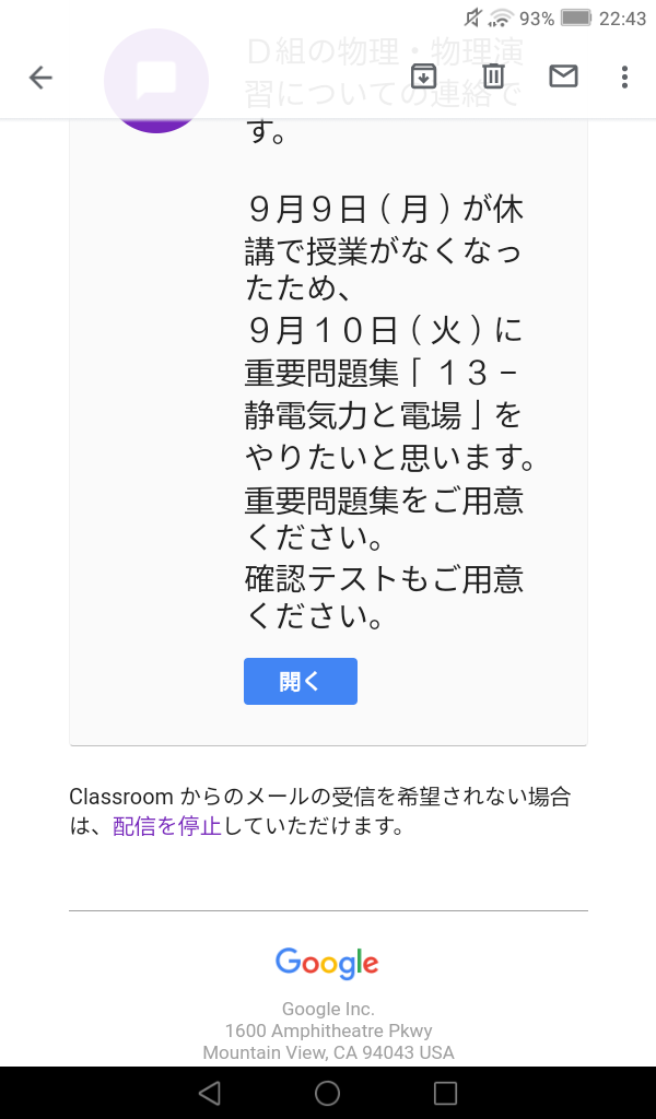 物理のテストを明日に振り替えます!理由はもちろんお分かりですね?台風が関東に直撃し、みんなを困らせたからです!覚悟の準備をしておいて下さい。近いうちに問題集をやります。テストも行います。履行してない人にも問答無用で受けてもらいます。追試の準備もしておいて下さい!あなたは追試者です!昼休みに招集される楽しみにしておいて下さい!いいですね!