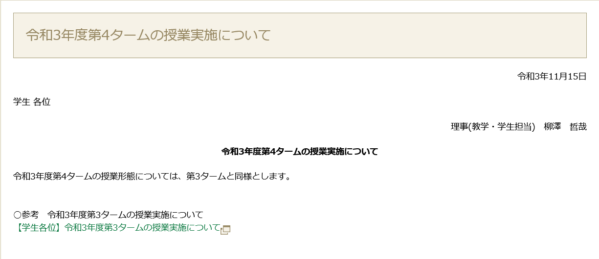 令和3年度第4タームの授業実施についてhttp://www.saitama-u.ac.jp/news_archives/2021-1115-0928-9.html