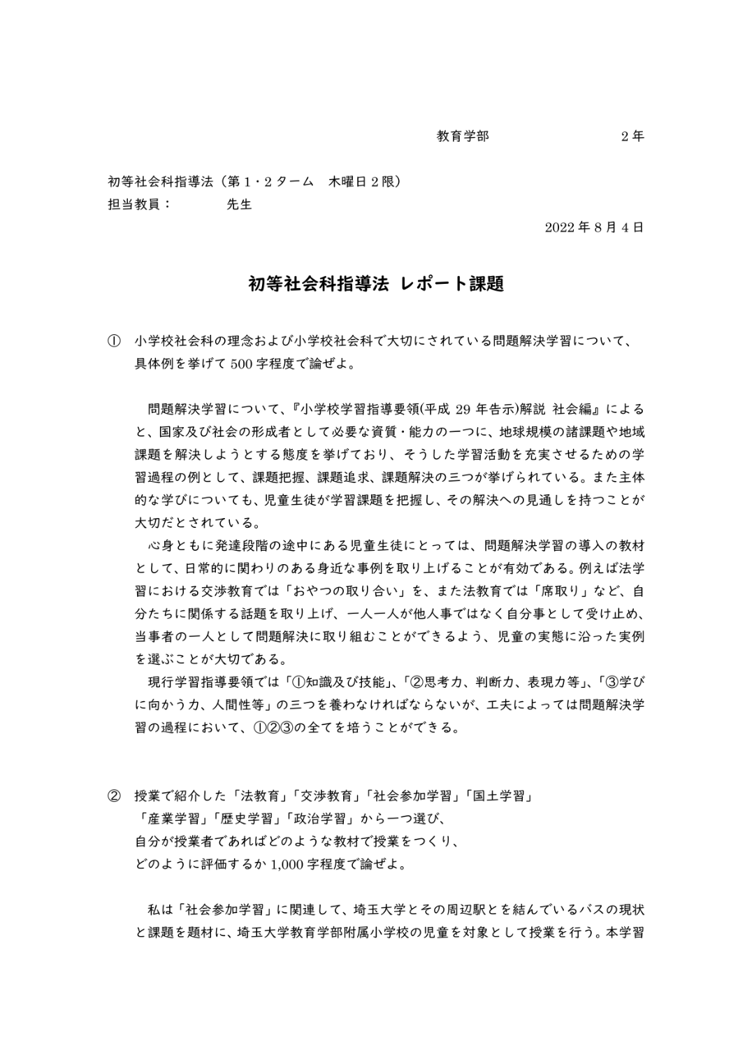 初等社会科指導法のレポート書いてたけど結構楽しかったから見て