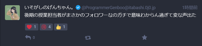 @ProgrammerGenboo マストドンである板橋丼は、ミスキーに見られる多様なファボ機能を移植しているのですね・・・