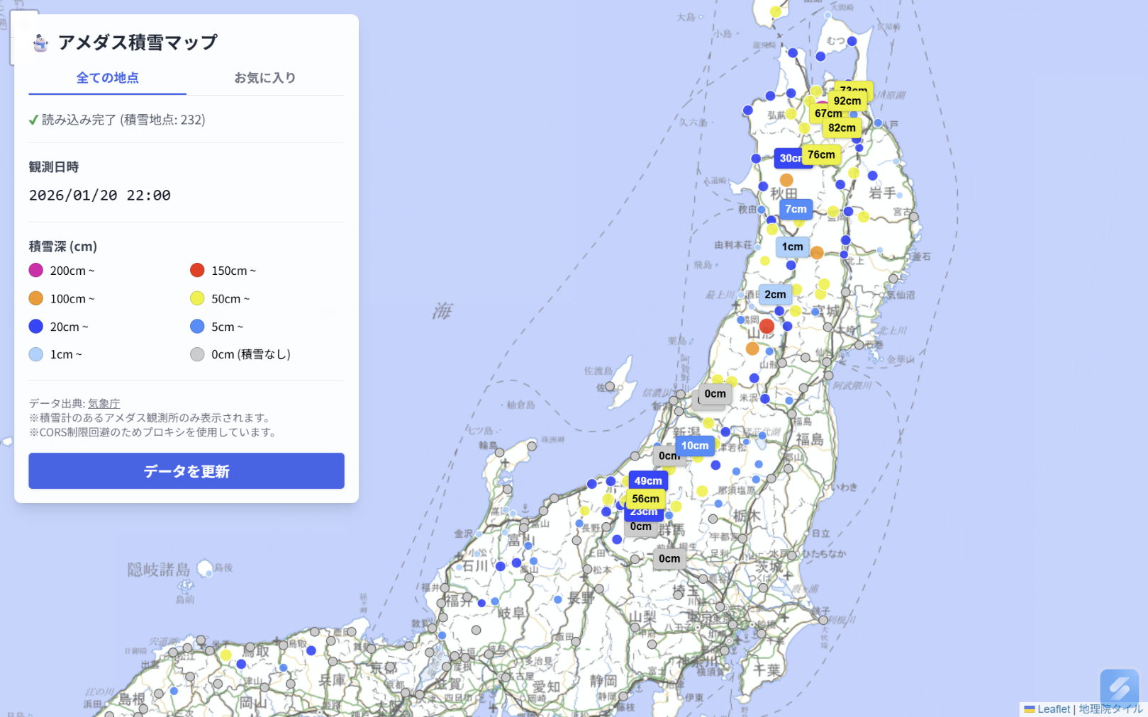 アメダス積雪マップ | 全国のアメダス積雪深を可視化