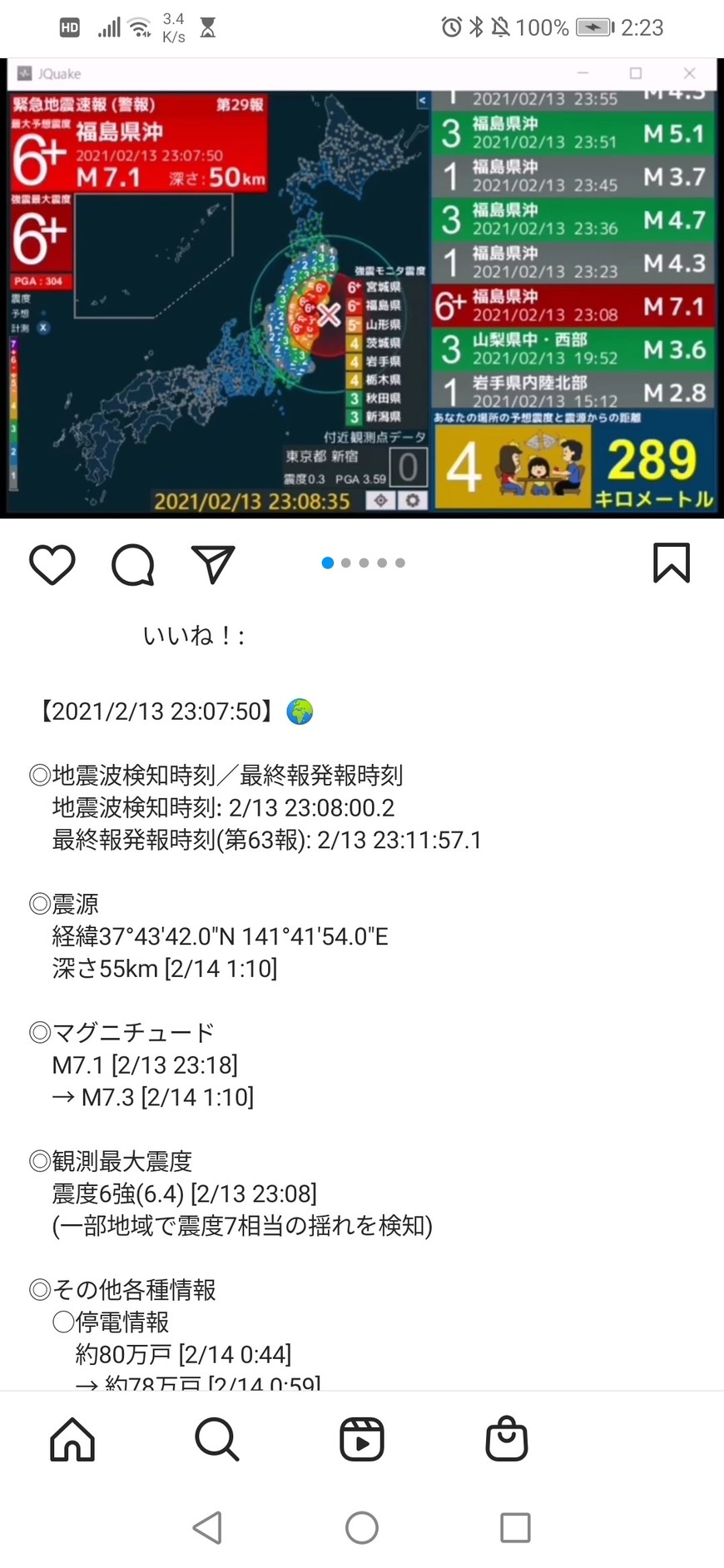 令和3年02月13日23時08分頃の福島県沖の地震 クライシスレスポンスサイト