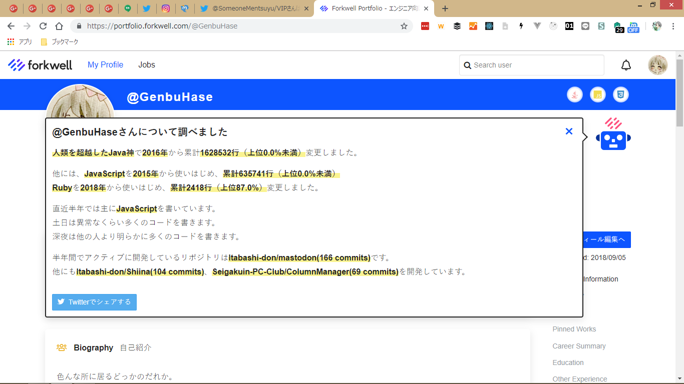 エンジニア向けスキル偏差値の診断結果、私の偏差値は、 JavaScript 45.0、 Others 43.0、 PHP 43.0 でした。あなたもスキル偏差値をチェックしよう! https://findy-code.io?h=9N5bsnM2Kqud4 #findy #スキル偏差値