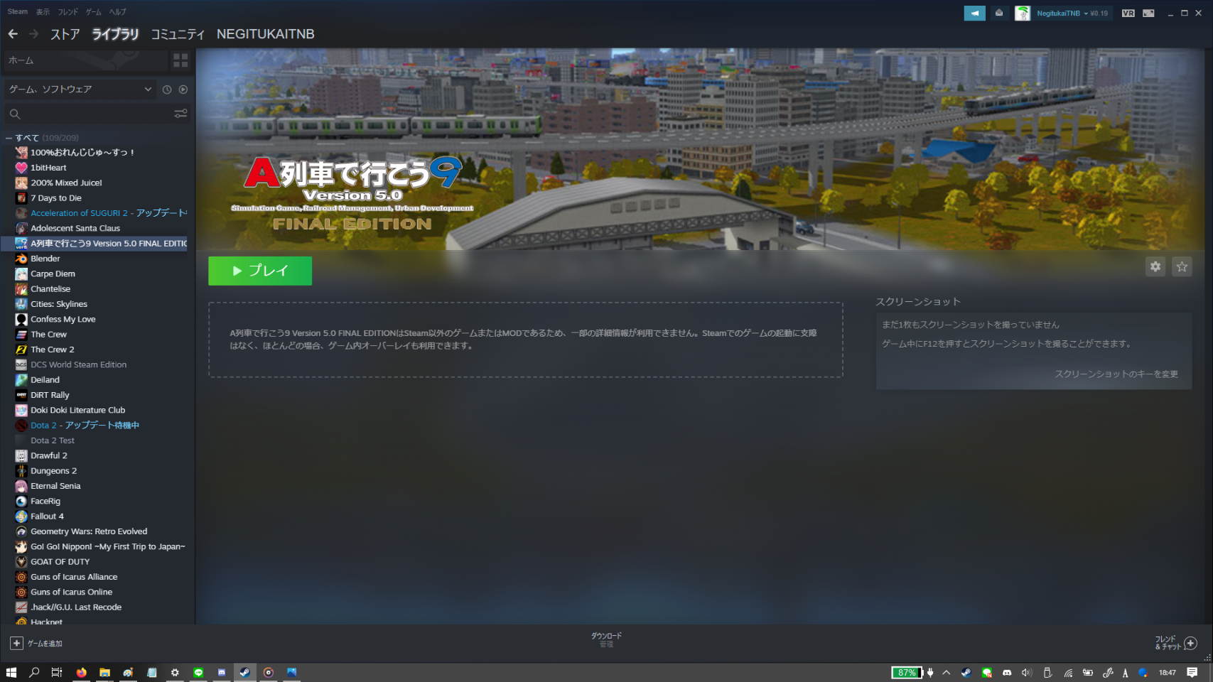 SteamにSteam以外のゲームとして入れた。ロゴとかは自分で作って入れたが
