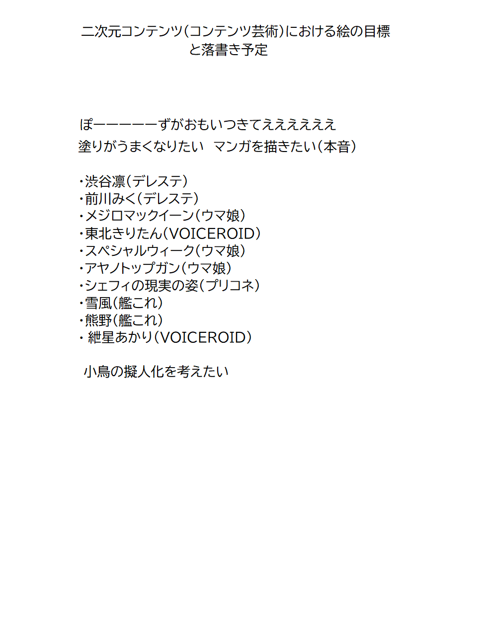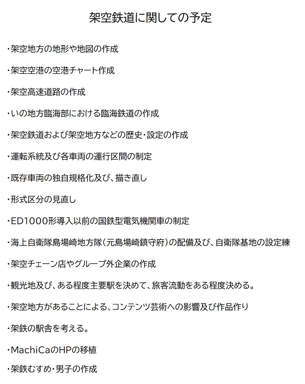 架空鉄道に関しての予定・及び目標