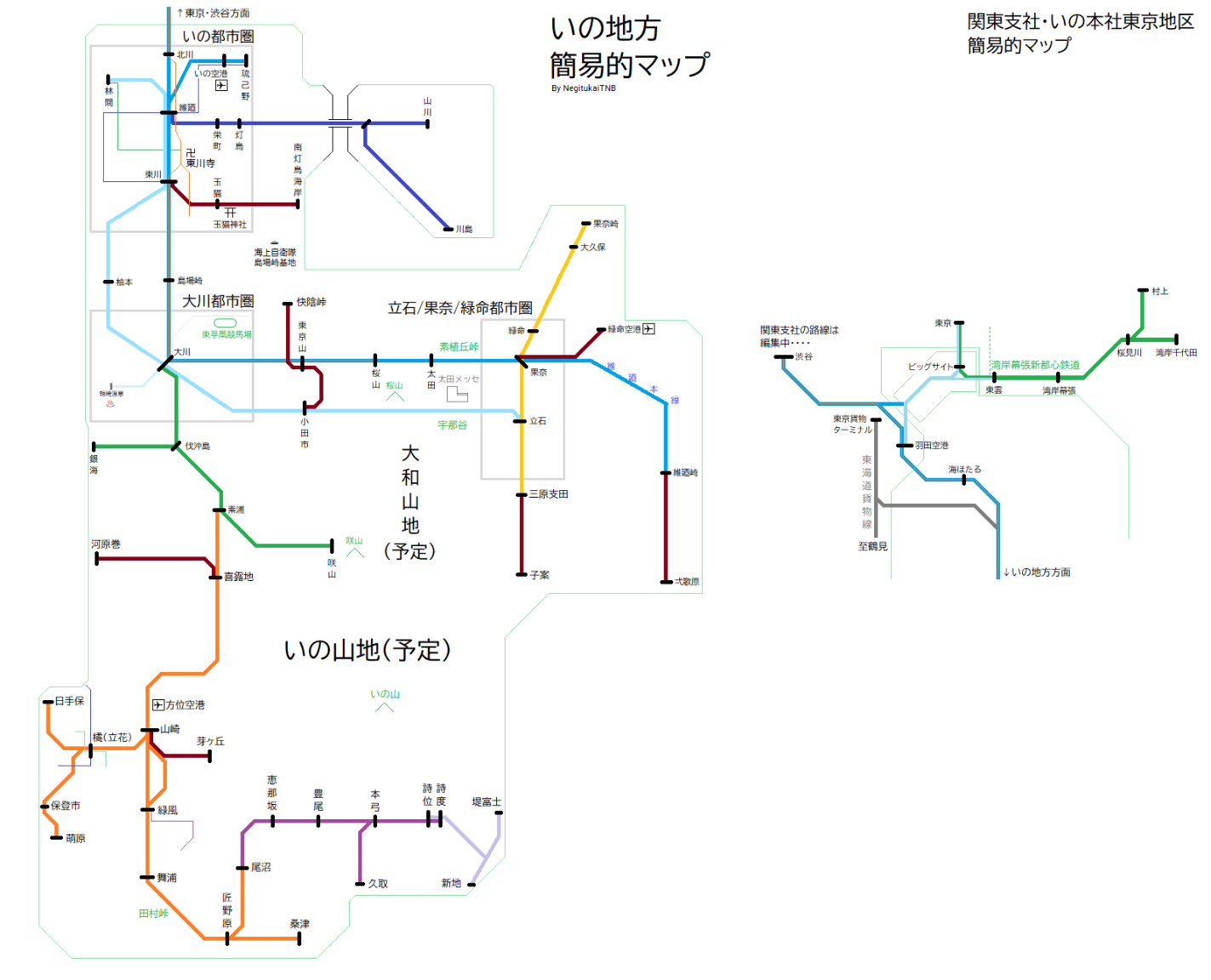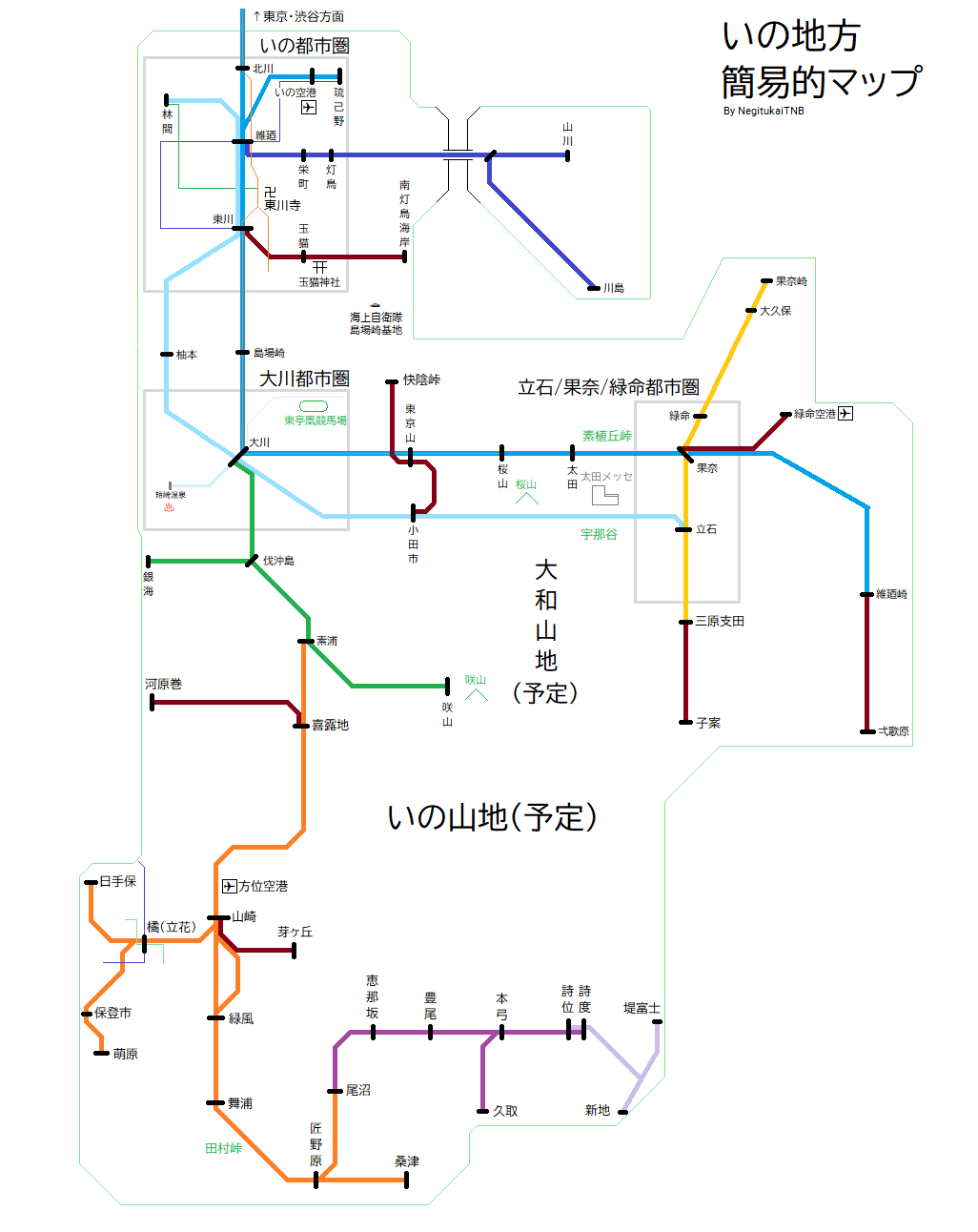 架空地方の概要図の駅名のみを完成させた