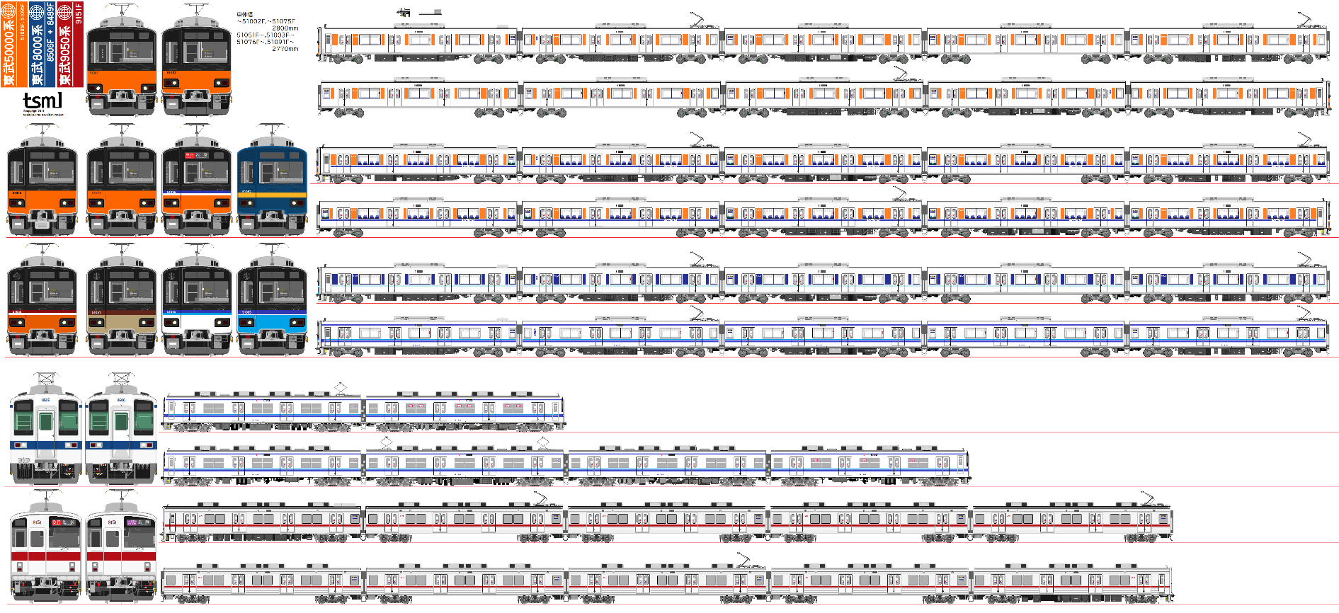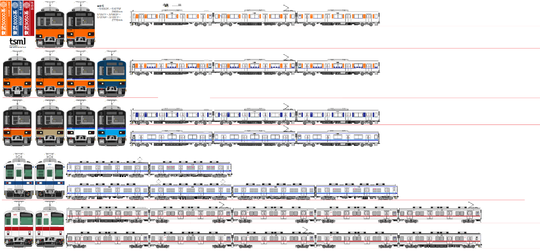 東武50000系列、車体幅を2800mmと2770mmのやつに分けた(今まではめんどくさがってすべて2770mmにしていた。)