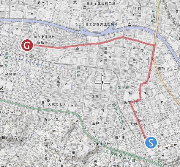 板橋シェアサイクル丼西台のアップタウンと入り組んだ住宅地の道、厳しい。