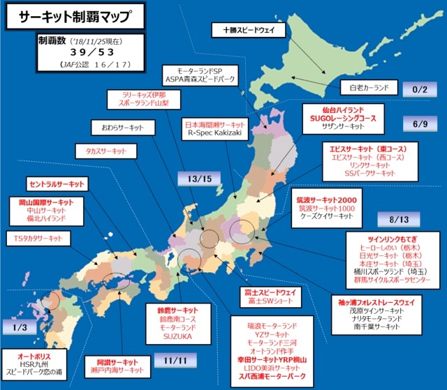 サーキットって北関東全部の県と福島にも有るんですね